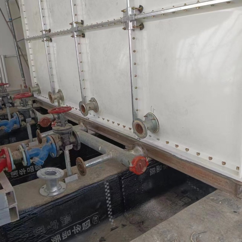 安裝玻璃鋼水箱時,注意玻璃鋼水箱的底板,同時在兩片膠合板之間加入密封條,并用φ10螺栓連接。使底板牢固密封。當螺栓施力時,應均勻施加。每個螺栓被強制3-4次。不允許一次使用過度的力量。否則,由于不均勻的力會導致裂縫。