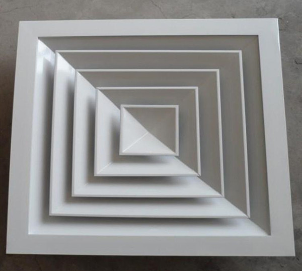 方形散流器先調(diào)挺直,表面光潔,葉片角度為固定式,葉片采用夾角片沖壓連接,整個葉片與邊框采用分離式結(jié)構(gòu),以方便安裝與調(diào)節(jié)。設(shè)計時可根據(jù)房間造型不同,選用不同出風(fēng)方向的散流器,可與調(diào)節(jié)閥配套使用鋁合金表面經(jīng)陽極氧化處理,也可根據(jù)用戶要求進(jìn)行靜電噴塑處理。